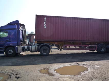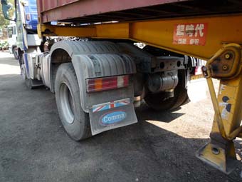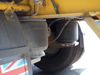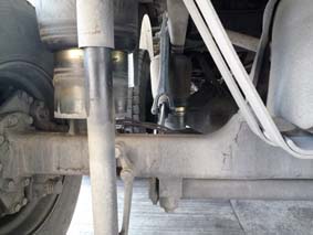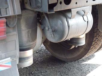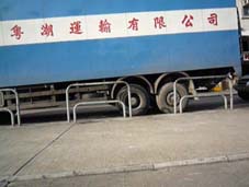以氣囊緩震為原理的貨櫃車(即拖頭)及拖架。